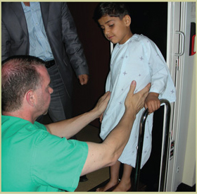 Dr. Terrell met with Mohammad and his father after the exam to explain the difficult level of the surgery. "Much of his bone is missing and what he does have is infected from so many surgeries, but we feel we can lengthen his leg a couple of inches now, he will take a break for a year or so, and then we will bring him back for another round to add two more inches." Mohammed and his father will stay in the United States for about 9 months while he recovers. During this time he will go through an extensive physical therapy program. At this time, Mohammad has had the surgery and is progressing very well. He is actually ahead of schedule! "I am not the hero," says Dr. Terrell. "I am just a technician."