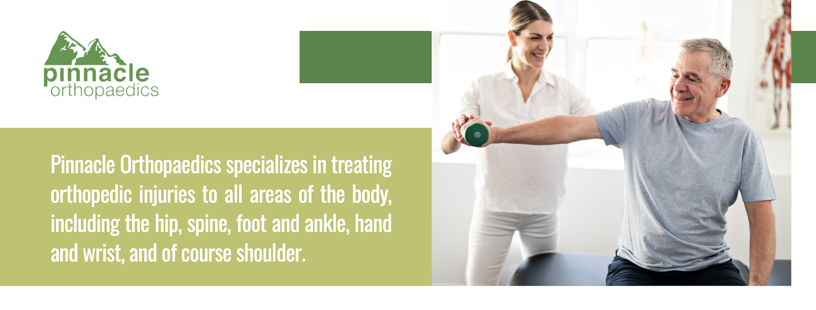 If you are experiencing shoulder pain when lifting your arm, it is time to have an evaluation by a sports medicine doctor or physical therapist. Pinnacle Orthopaedics specializes in a range of injuries and ailments, including hip, spine, foot and ankle, hand and wrist, and of course, shoulder pain.